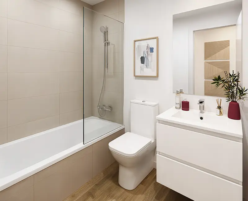 Fiabilidad y precisión en los pequeños gestos del día a día. Una instalación de fontanería pensada para funcionar con suavidad, silencio y constancia, aportando tranquilidad y confianza en cada uso. Los baños se conciben como espacios de bienestar cotidiano, con aparatos sanitarios de diseño actual y líneas limpias que transmiten orden y calma. Soluciones adaptadas a distintas formas de vivir, donde duchas y bañeras responden a un uso cómodo, seguro y eficiente. La grifería, precisa y equilibrada, permite regular el agua con naturalidad, cuidando el consumo sin renunciar al confort. En la cocina, cada detalle está pensado para optimizar la energía y facilitar la rutina diaria, con tomas de agua bitérmicas. Porque el bienestar no siempre se ve, pero se nota cuando todo funciona como debe: en silencio, con fiabilidad y pensándolo para durar.