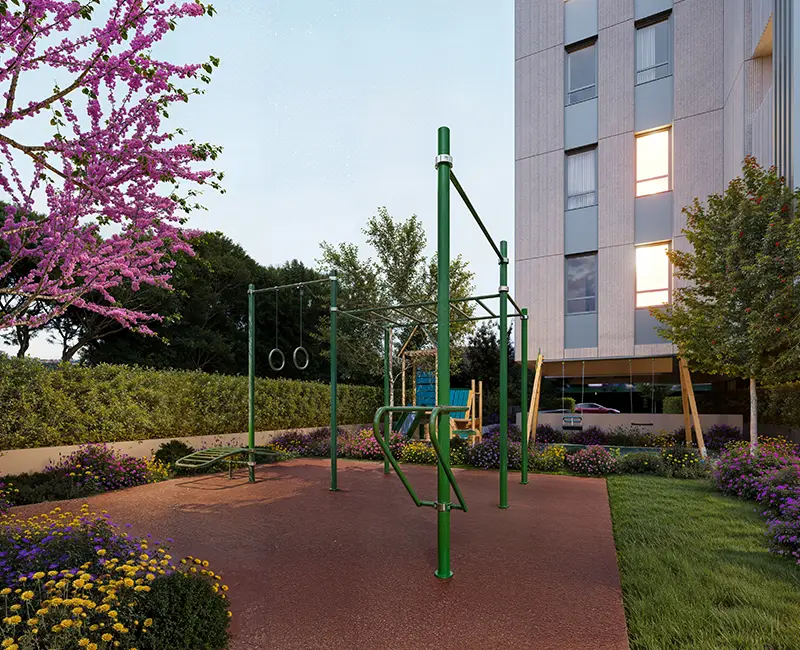 - Zona de calistenia, destinada al ejercicio al aire libre y al bienestar activo.