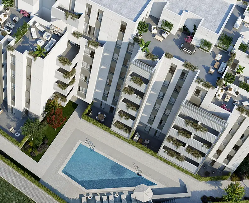 - Piscina comunitaria, integrada en el conjunto como espacio de encuentro y disfrute en los meses de verano.